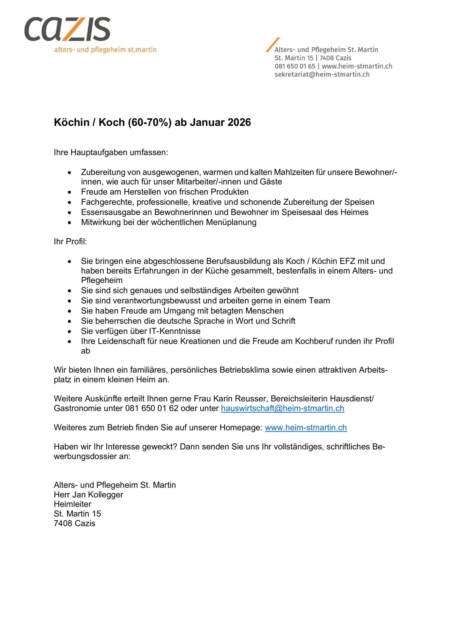 Wir sind ein öffentlich-rechtlicher Betrieb und der Personalverordnung des Kantons Graubünden unterstellt.